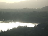 周囲の3/4は展望のきくテラスから見る市街は、山に沈みかかる夕陽に染まっている。