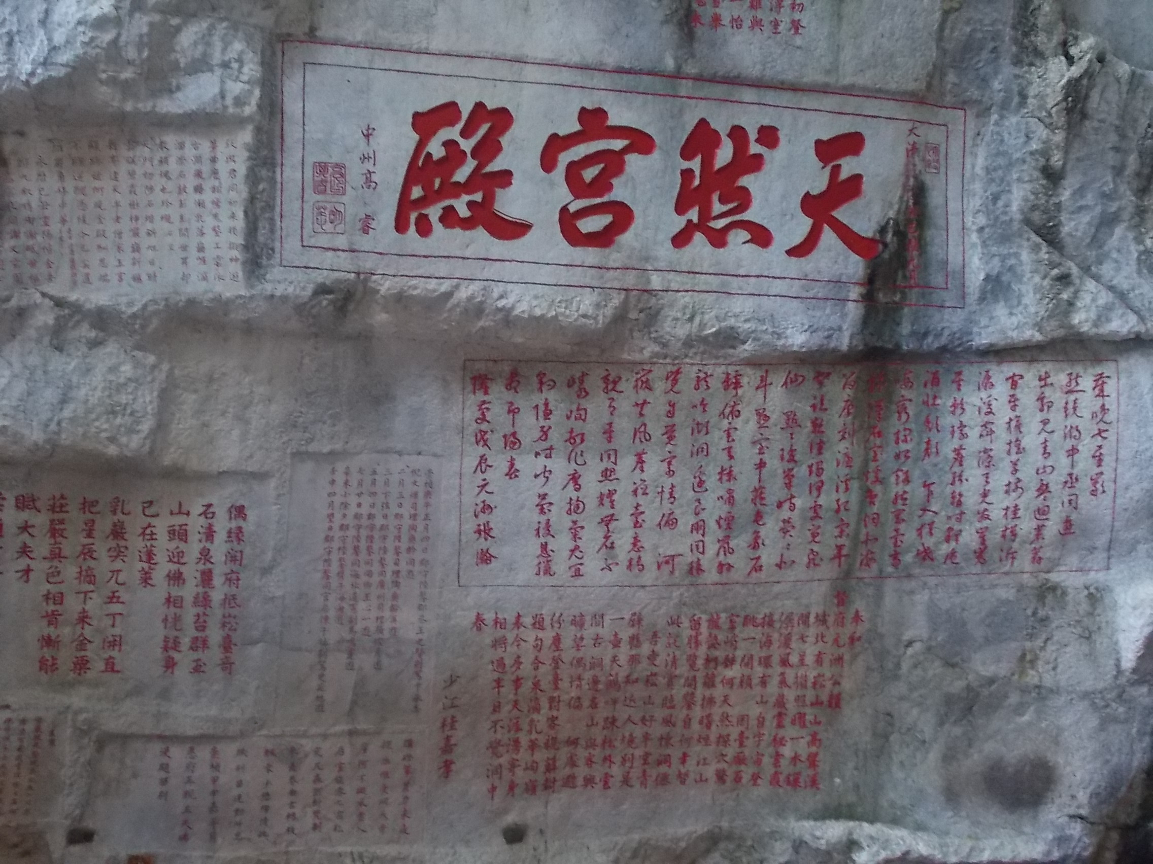 「千年詩廊」は壁一面が前漢から現代までの詩で埋め尽くされた 絶壁の岩窟だ。