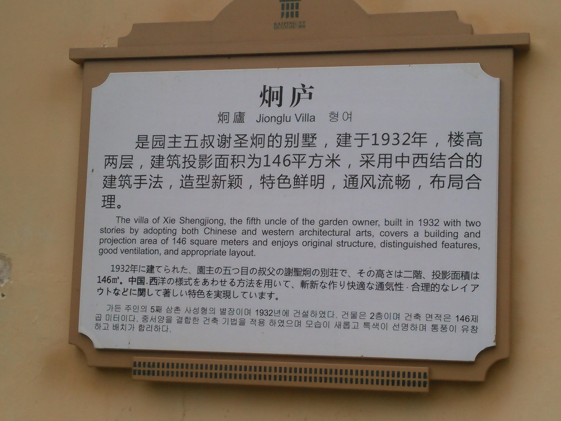 ↑ 炯蘆(jionluVilla)解説パネル 建物自体は大きくない。