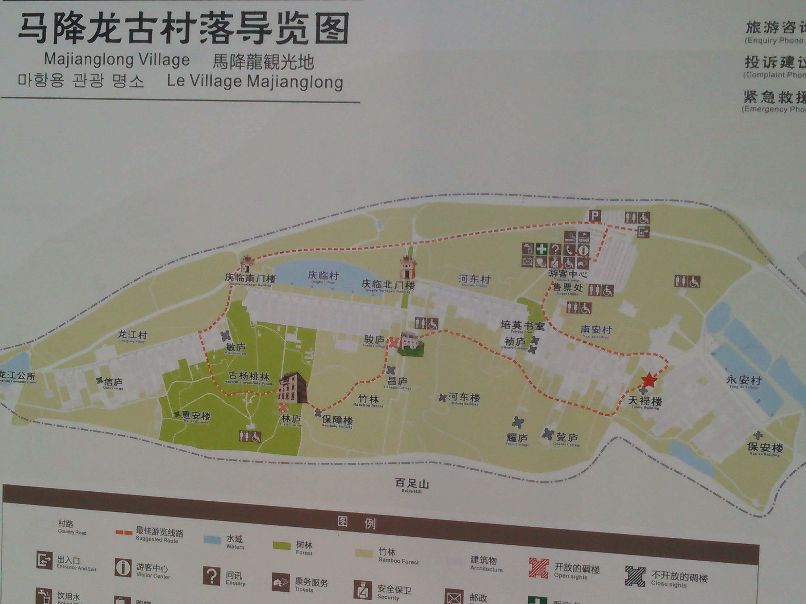 図で右上の入り口から天禄楼をすぎた。園内の線を左側に進むと、駿蘆・昌蘆・林蘆を廻れる。