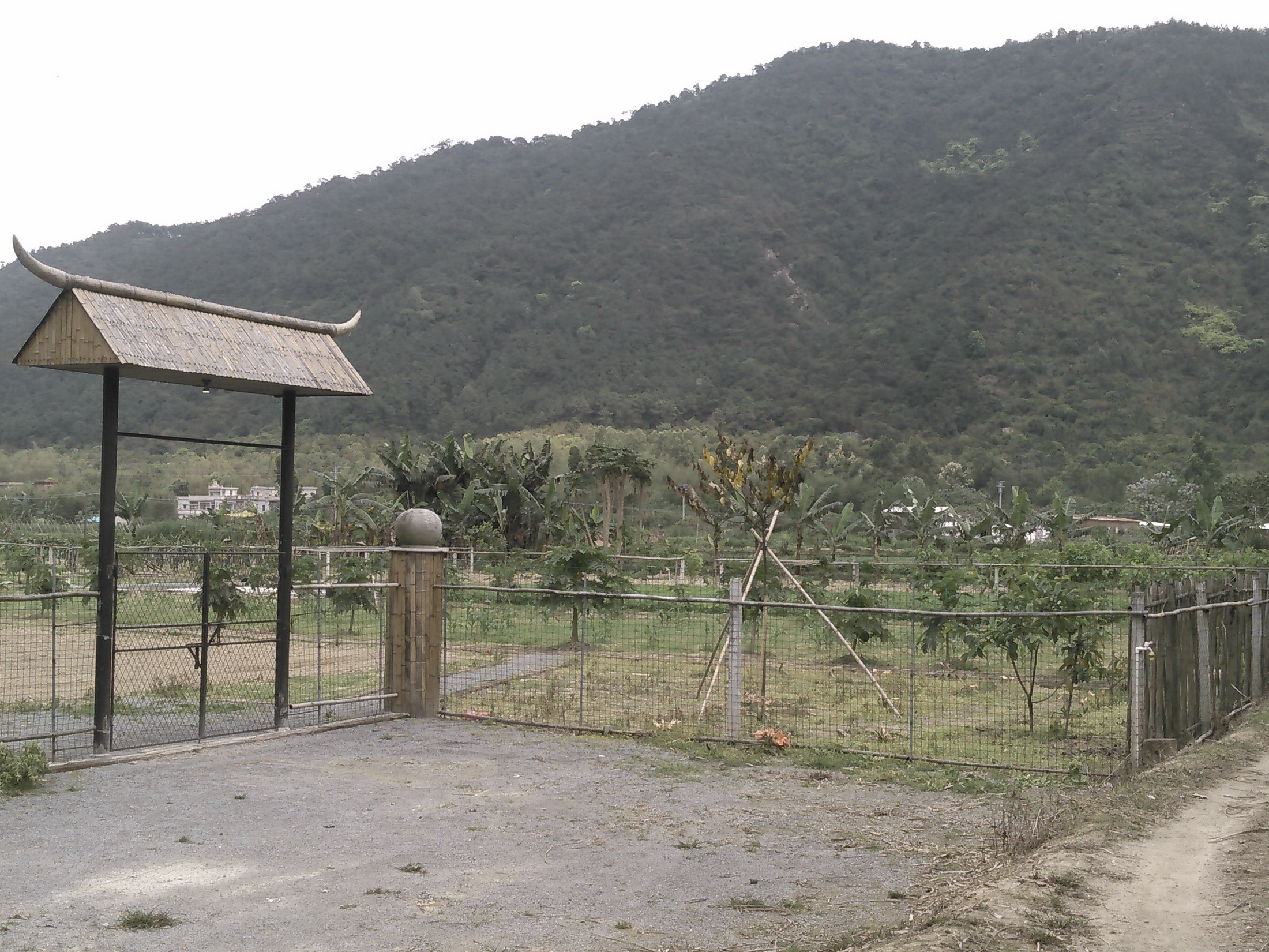 村外れの農場(BarbequeField) 緑の山を見てほっと一息。ここまでは開発が及んでいないようだ。