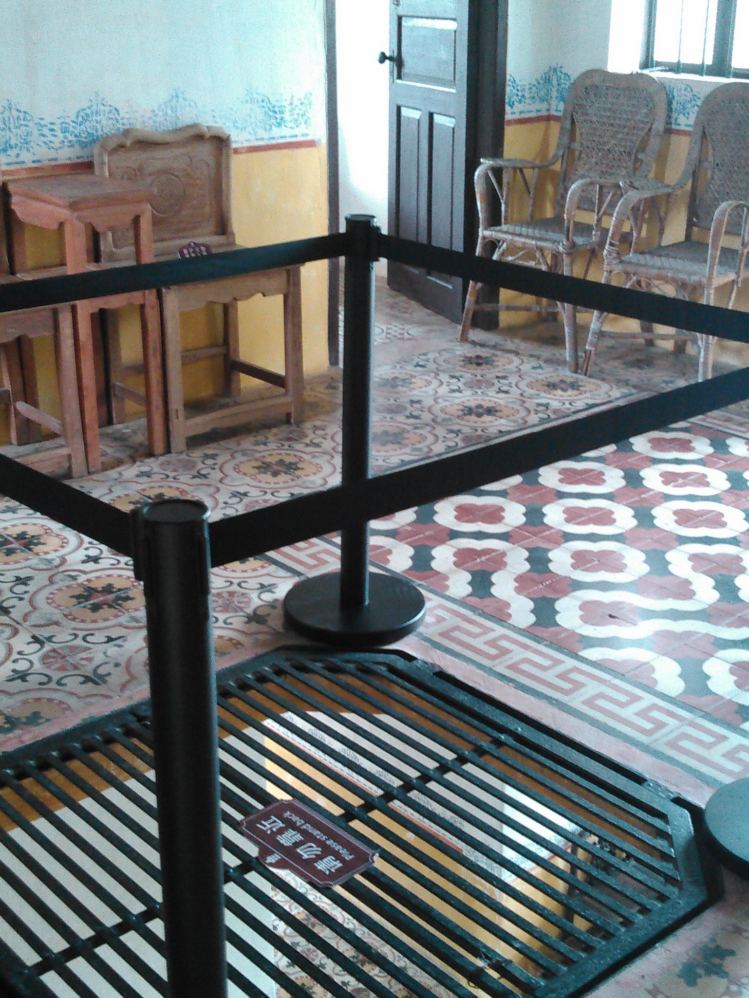 駿蘆3階から。 格子の床から2階の様子が見える。防犯とも(人間の)風通しを良くするためとも。