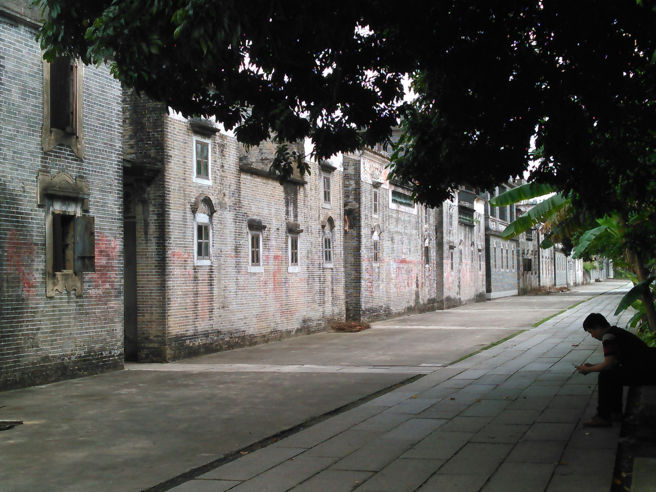 慶臨村の新しい家並み。 振り返れば、はじめの入り口、旅客中心に戻れる