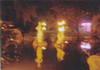 レストラン前のある公園の池のてきとうなデザインの像(プラスチック製)。