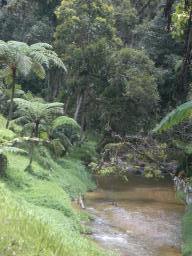 | Brinchang ブリンチャン山から降りて Tanah Rataタナラタ集落に戻ってきた 間の、Pakit Fall パキット滝の前に清流があった。 あたりはセミや鳥の声でいっぱいだった。 |