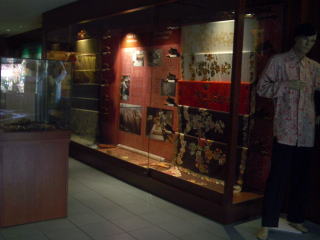 お隣りにあった人種、民族と衣料の博物館の内部 マレー民族と生活や織物などの歴史が豊富な資料で紹介されている。(1時間くらいで知識を仕入れる。) シンガポール、インドネシアにも住むマレー人(Orang Asli)とマレー文化を 全体から解説してくれるので、このエリアを旅する者には、ありがたい存在だ。 ベタリン街の北向かい"INTERNATIONAL MARKET"ここで、本物のバティックなどで目を肥やして クラフト・カルチュラル・クンプレクス(KLCC駅ツインタワー近く)のお店を視て歩くのがいいかも。 |