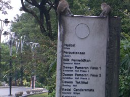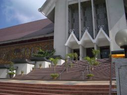 | 国立博物館(MuziumNational)。 建物も中身も日本のそれより数段も立派。 マラヤ人種は有史前後から海流に乗り、太平洋,インド洋,セーシェルや遠くはアフリカのマダガスカル、 喜望峰に住み着き、日本人よりも遠い紀元前の過去から世界とかかわってきた、長い歴史のある民族だ。 |