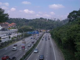 | 国立博物館からバードパーク途中の 渡り廊下(歩道橋)から見た、北へのハイウエイ。 |