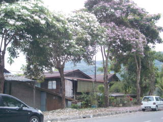 | フェリンギの海岸から数km北、ジョージタウン高台の民家。 ホワイト、ブルー、ピンクの花を付けた、背の高い樹が続く、瀟洒な城宅街。 |