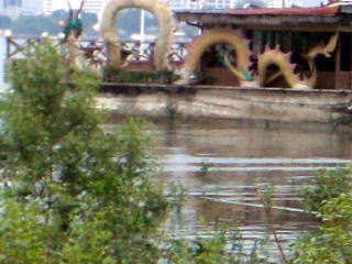 | 廃船になった水上レストラン。 いま見るかげもない。 |