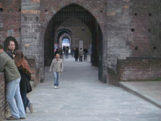 スフォルツェスコの城は正面から入ると、左右両翼に長く、その右翼だけが、博物館に公開されていた。