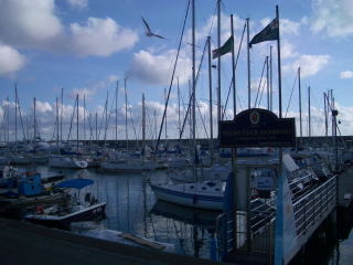 そこまでの距離は約2キロほどで遠くはない。 歩くと左側にちらほら、プレジャーボートの浮かぶ港が見えた。